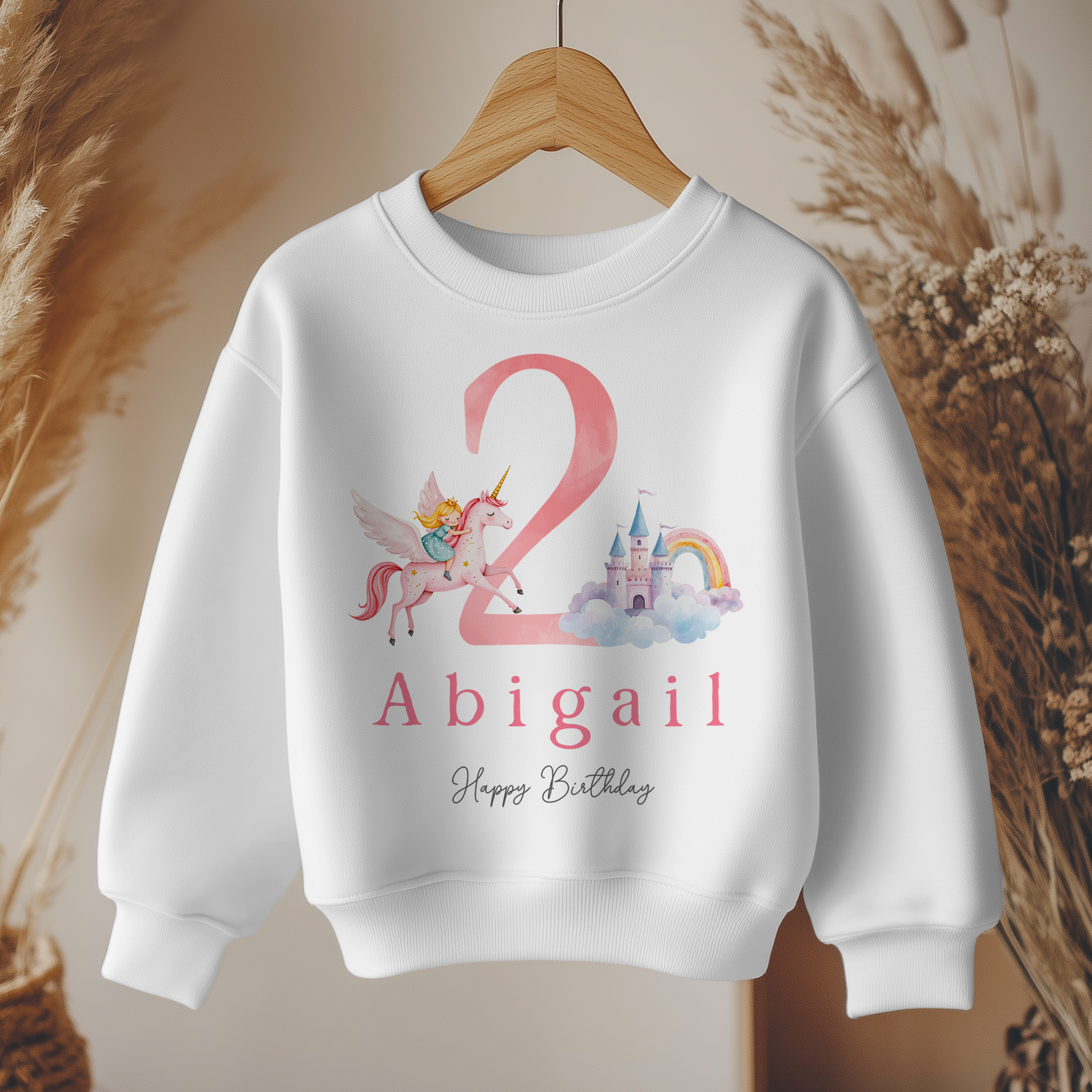 2nd Birthday Unicorn Princess Rainbow Theme Girl Personalised Toddler & Kids Sweatshirt