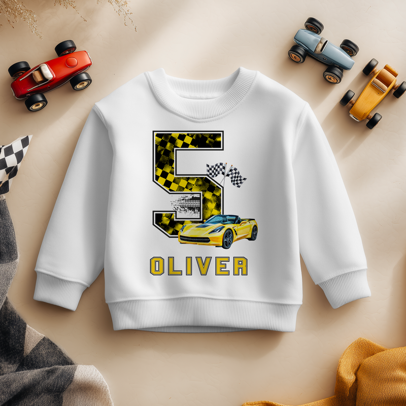 5th Birthday Super Yellow Race Car Boy Personalised Kids Sweatshirt