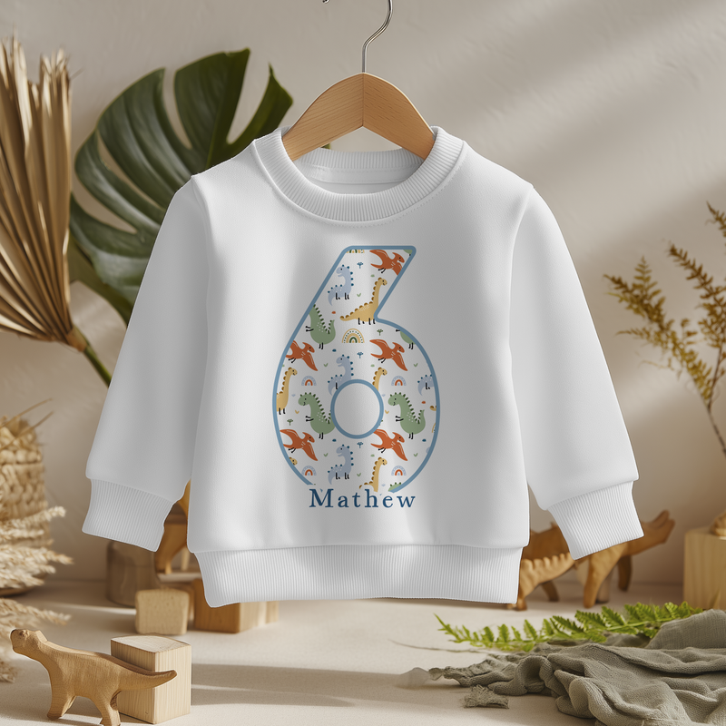 6th Birthday Dinosaur Pattern Personalised Kids Sweatshirt