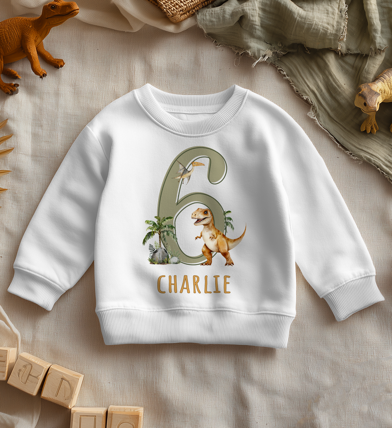 6th Birthday Dinosaur T-Rex Personalised Kids Sweatshirt