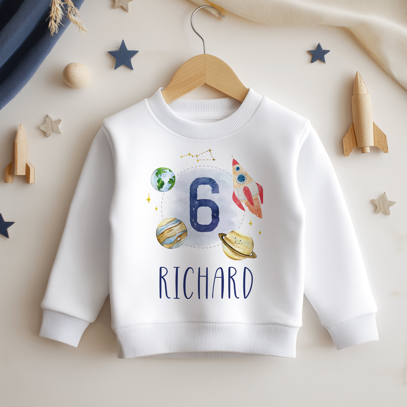 6th Birthday Galaxy Space Theme Personalised Kids Sweatshirt