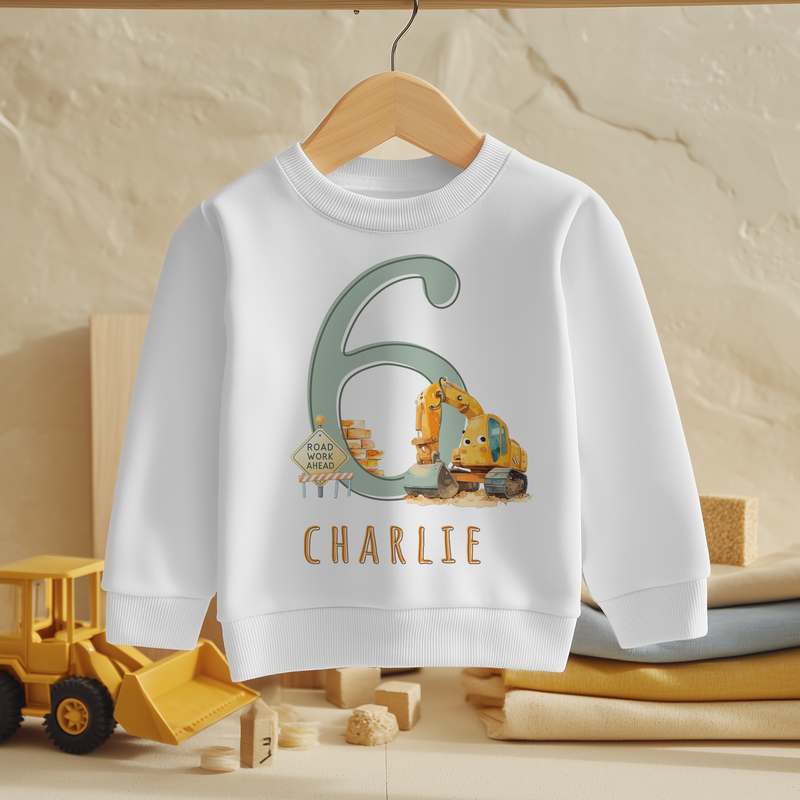 6th Birthday Digger Construction Personalised Kids Sweatshirt