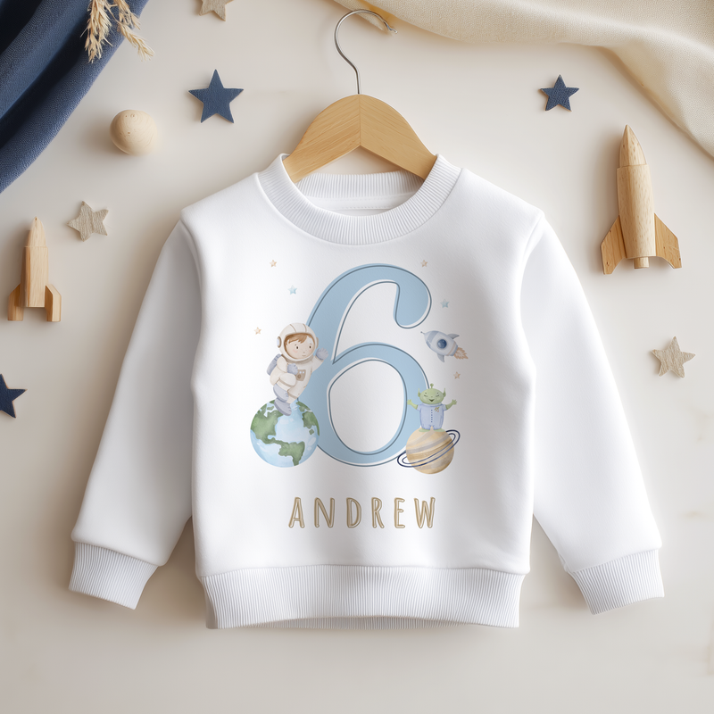 6th Birthday Astronaut Galaxy Rocket Personalised Kids Sweatshirt