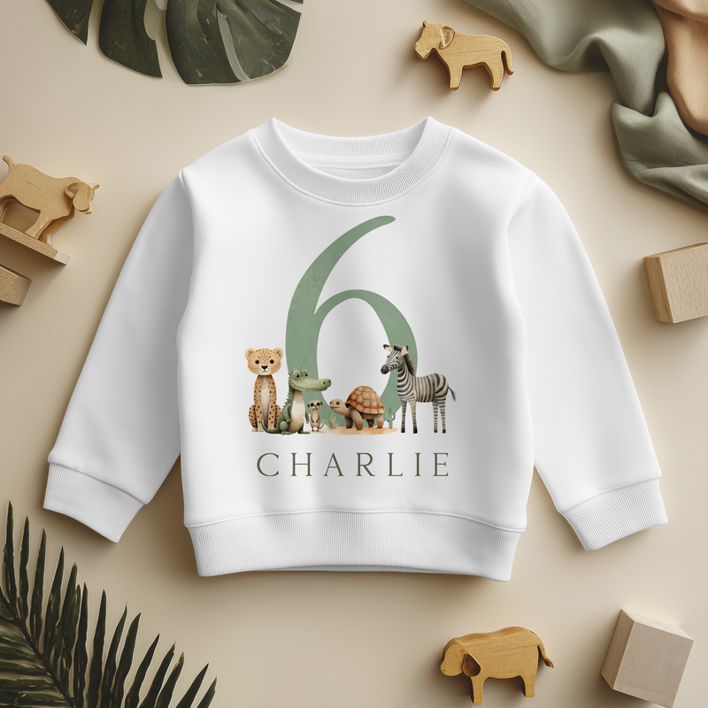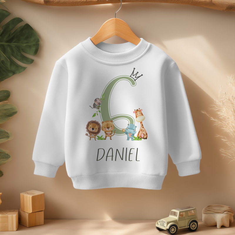 6th Birthday Safari Jungle Animals Personalised Kids Sweatshirt