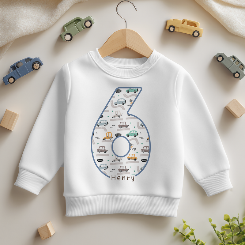 6th Birthday Cars Pattern Personalised Kids Sweatshirt