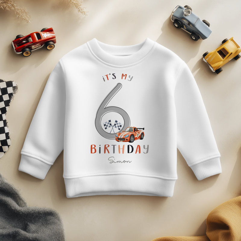 6th Birthday Super Racing Car Theme Boy Personalised Kids Sweatshirt