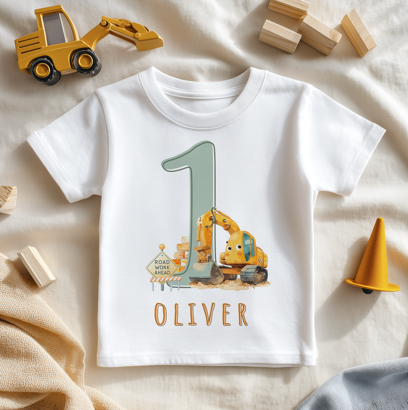 1st Birthday Digger Construction Personalised Toddler & Kids T Shirt