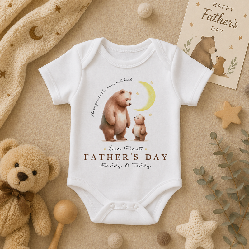 Personalised Father's Day Bears Moon & Stars Baby Bodysuit for Kids