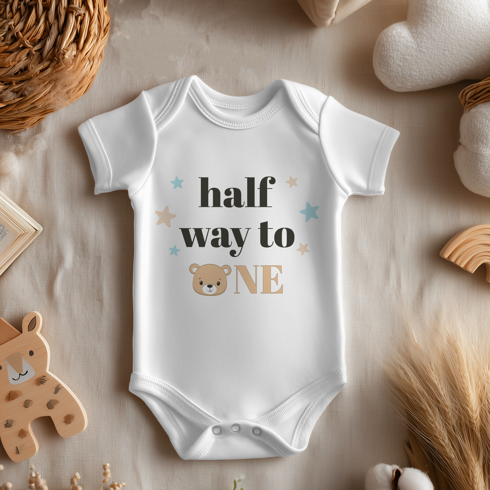 Half Way to One, 1/2 Birthday Cute Teddy Bear Baby Bodysuit