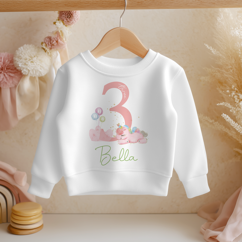 3rd Birthday Unicorn Girl Personalised Kids Sweatshirt