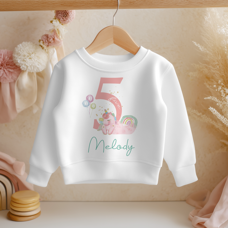 5th Birthday Unicorn Girl Personalised Kids Sweatshirt