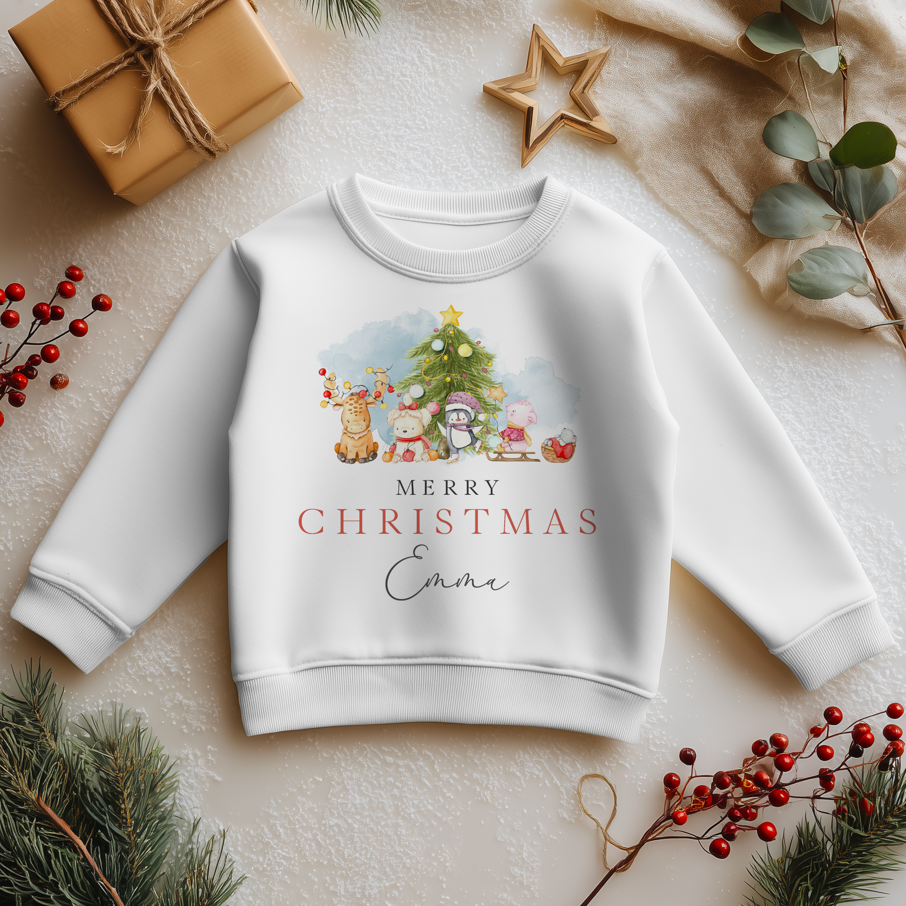 Christmas Cute Animals Personalised Toddler & Kids Sweatshirt