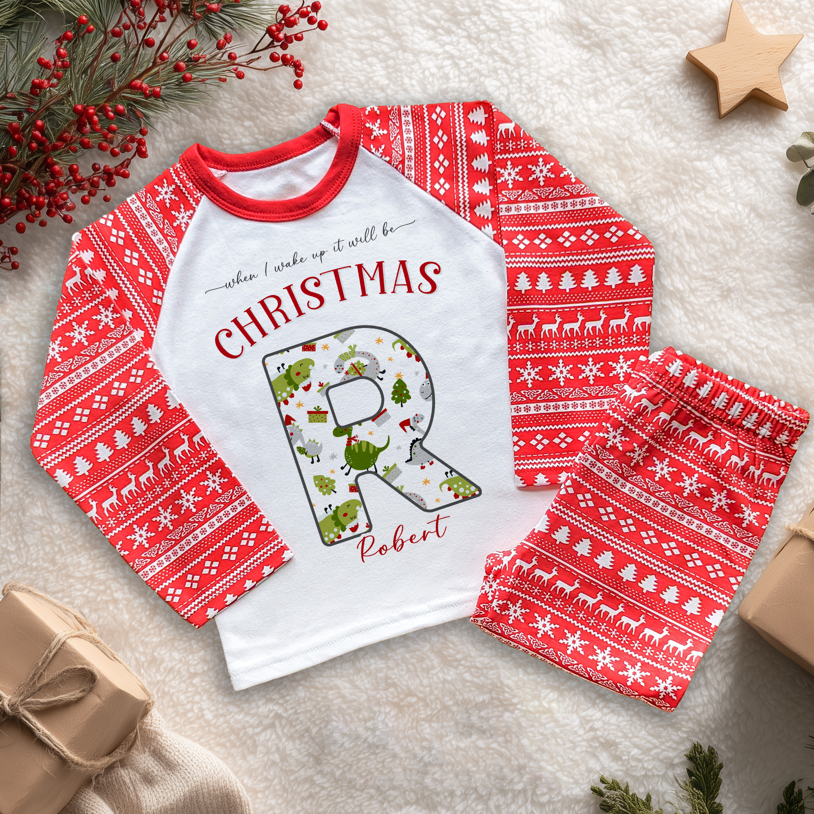 Christmas Dinosaur Pattern Personalised Toddler & Kids Pyjamas Set (PJ's)