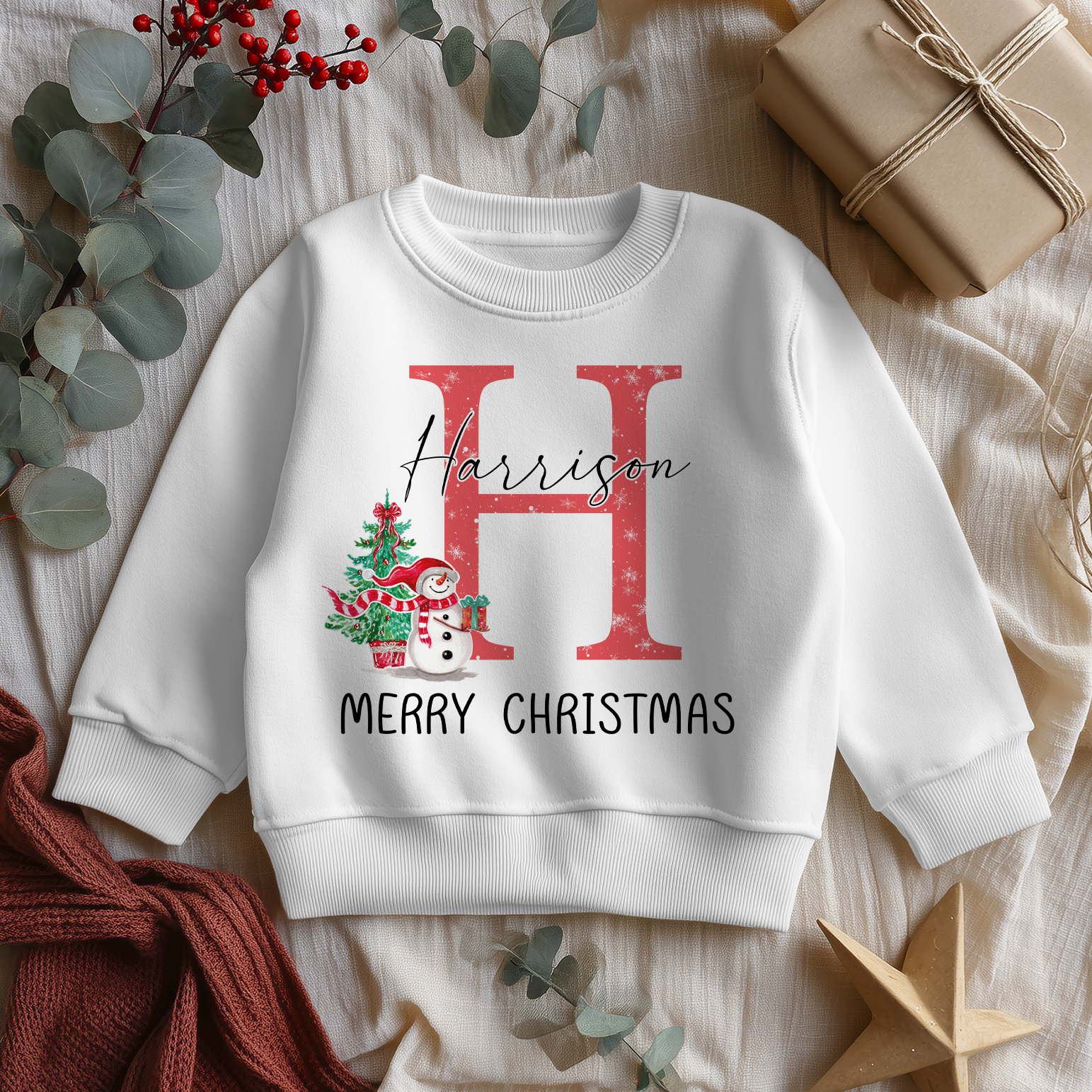 Christmas Name With Red Initial Personalised Toddler & Kids Sweatshirt