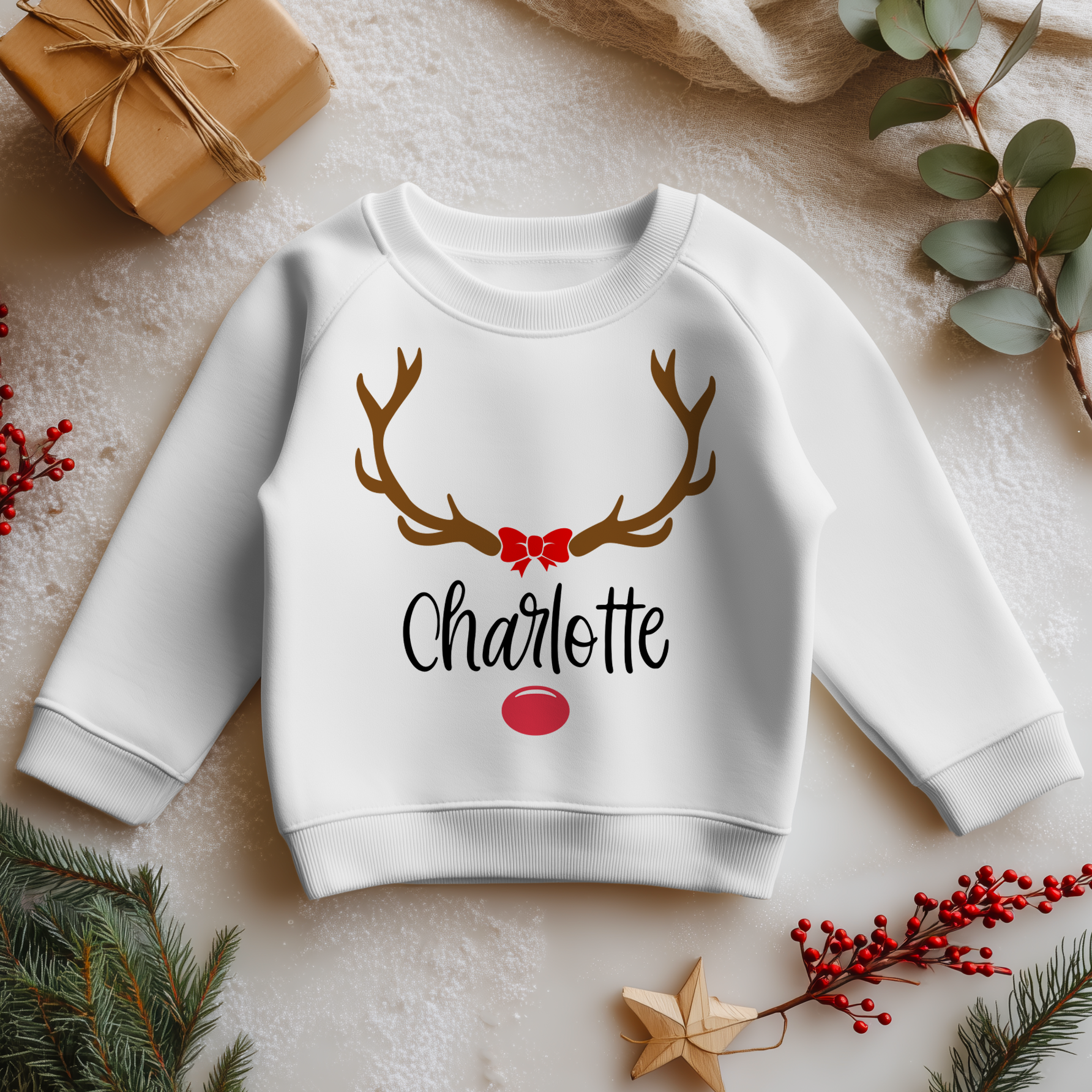 Christmas Reindeer Personalised Girl Toddler & Kids Sweatshirt