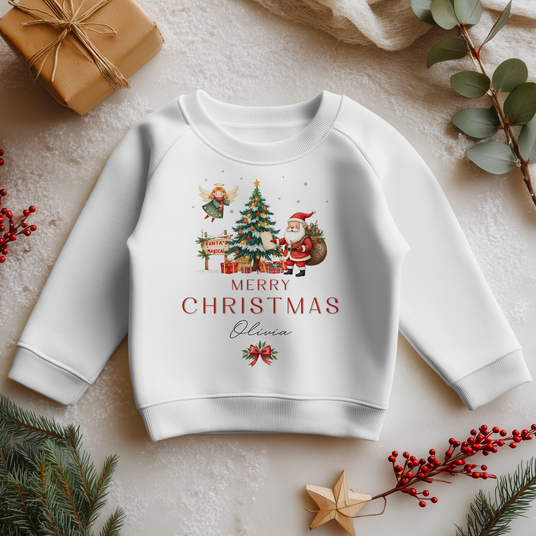 Christmas Santa With Angel Personalised Toddler & Kids Sweatshirt