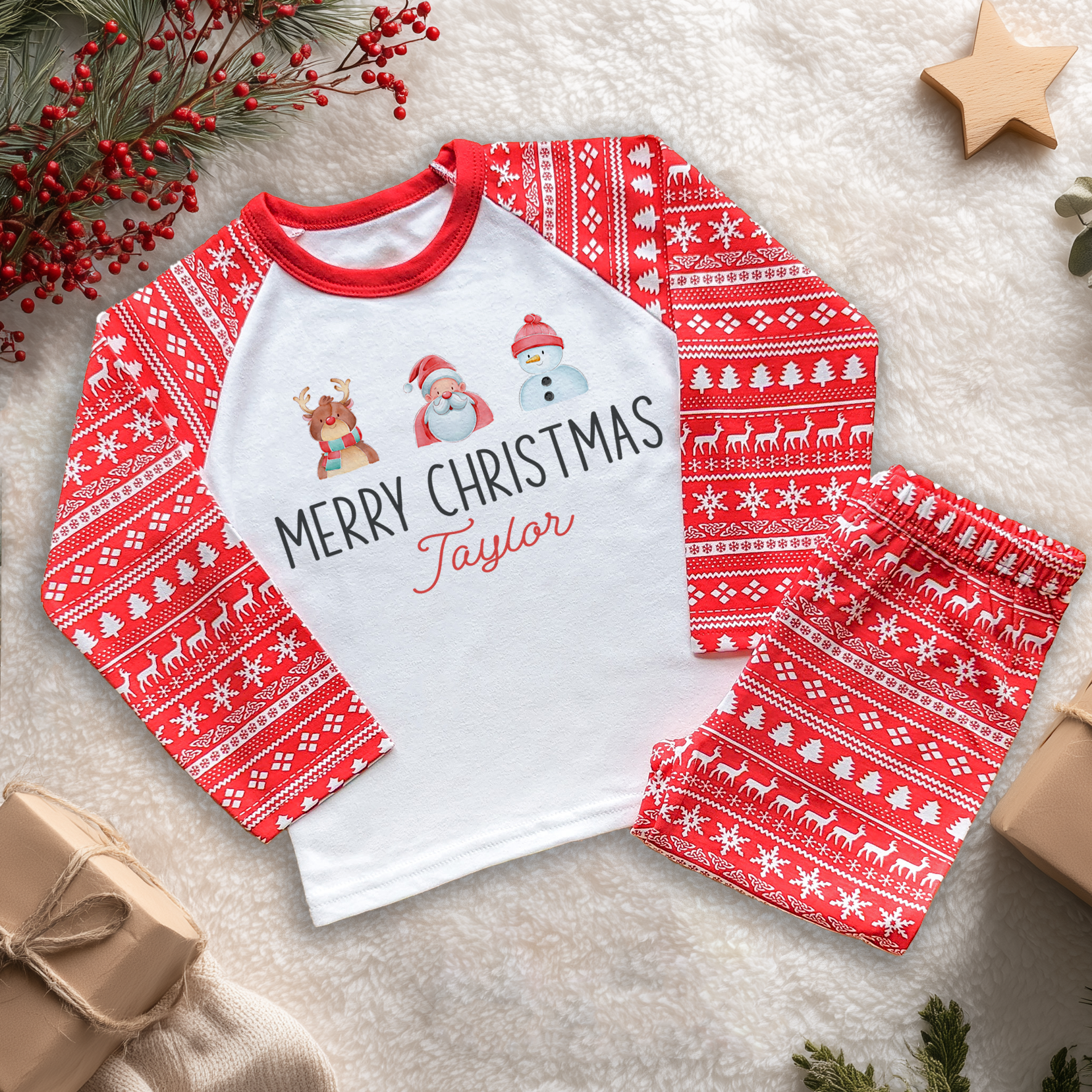 Christmas Santa Reindeer Snowman Personalised Kids Pyjamas Set