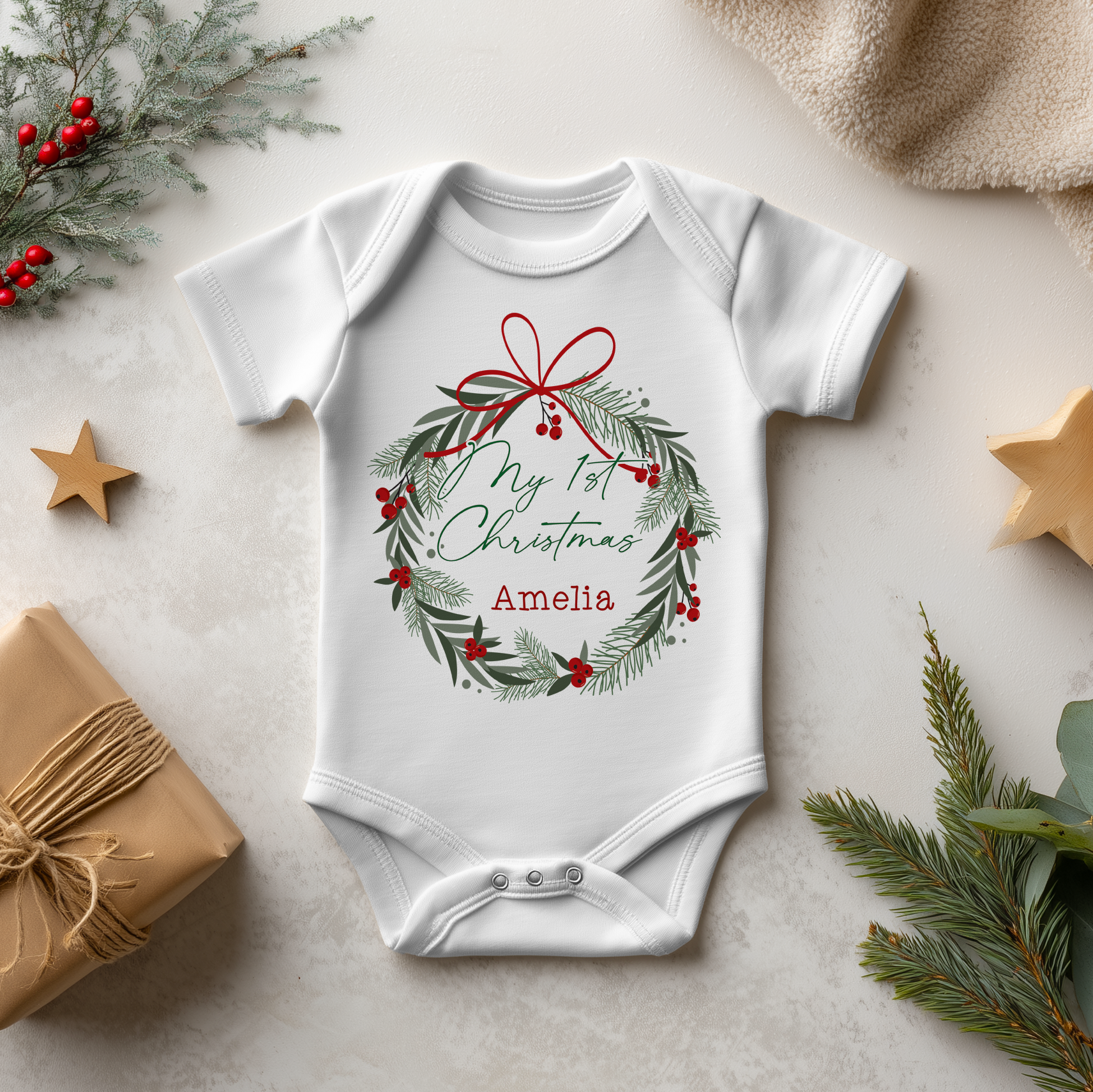 My 1st Christmas Wreath Personalised Baby Bodysuit