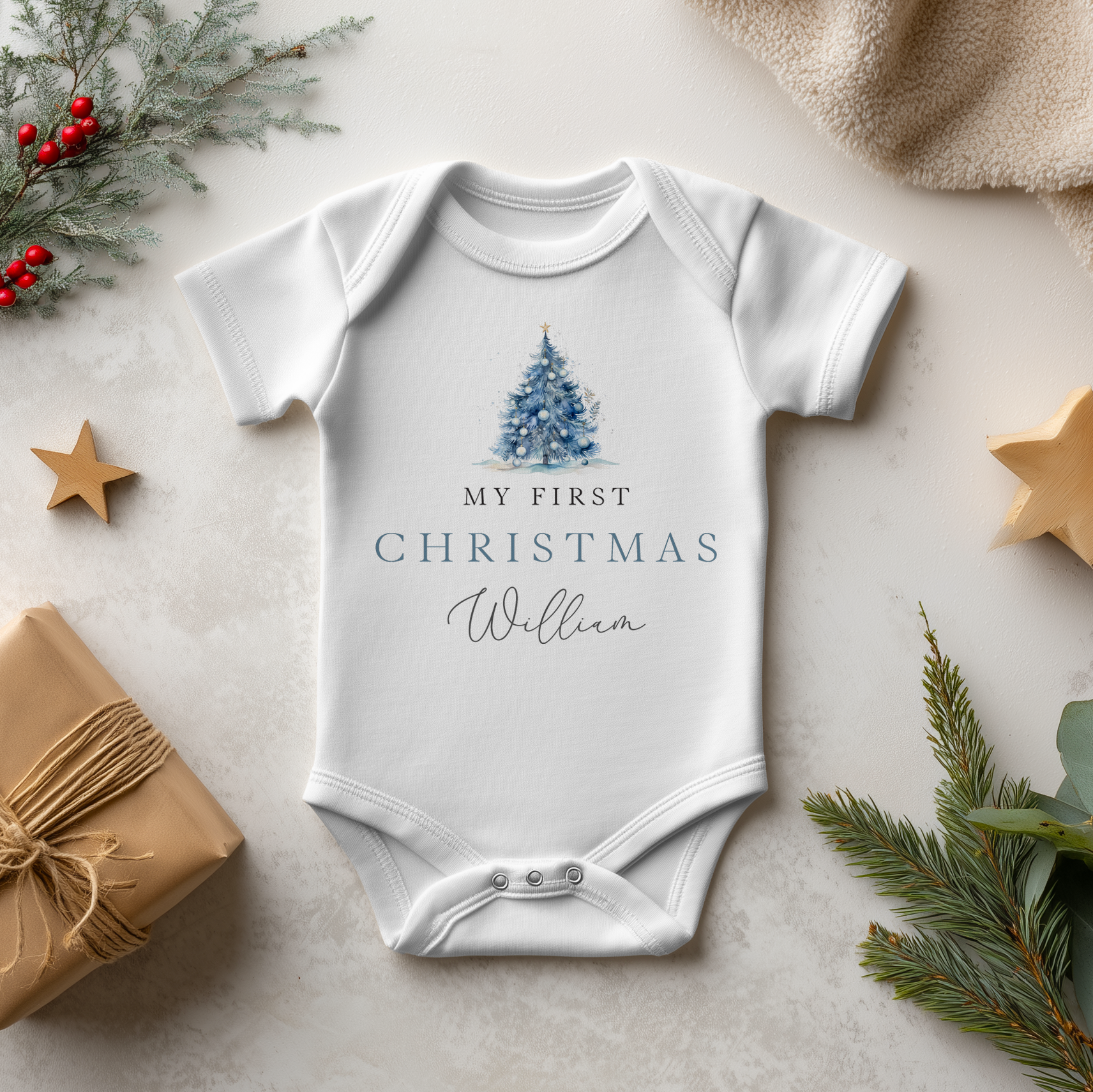 My First Christmas Blue Theme Personalised Baby Bodysuit