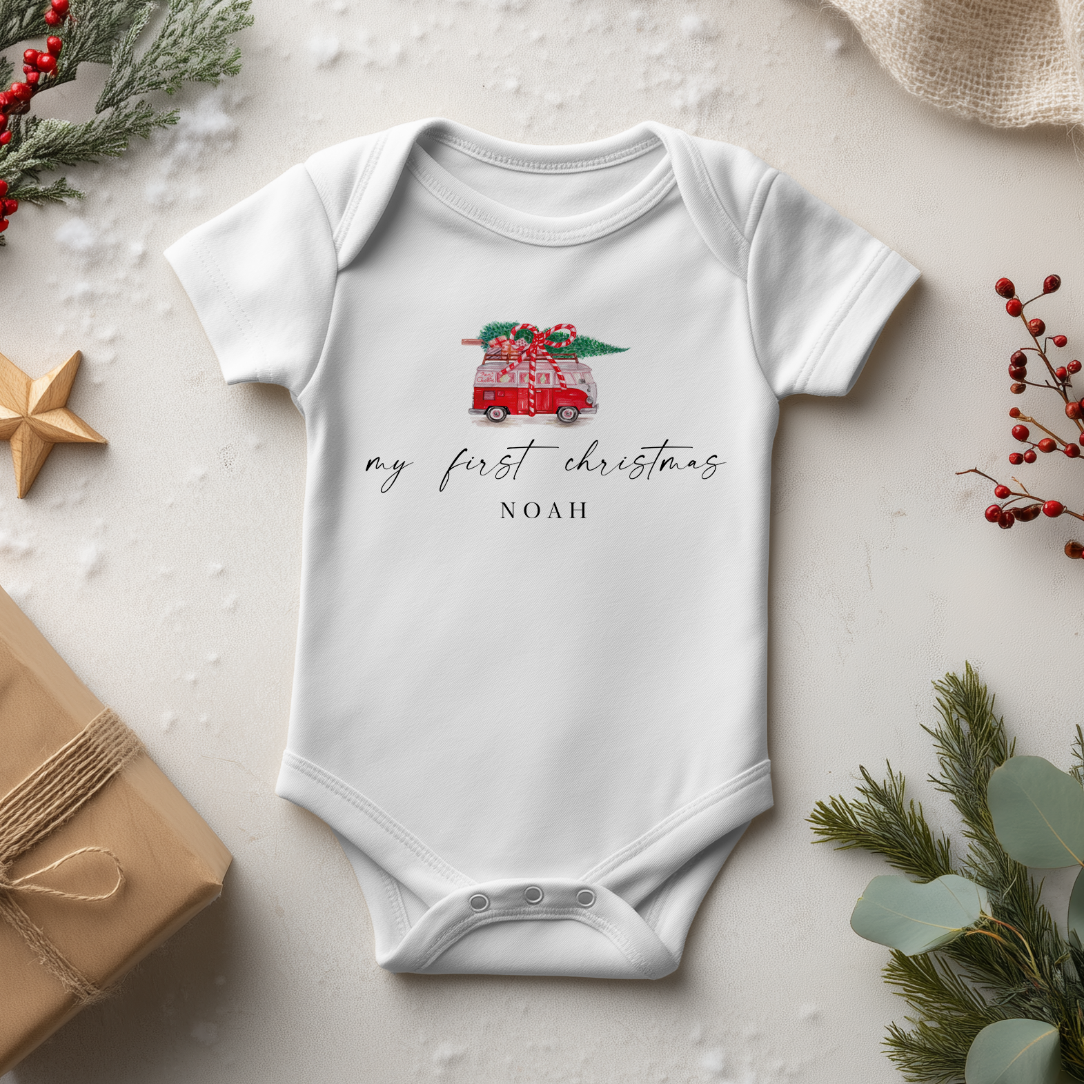 My First Christmas Truck Personalised Baby Bodysuit