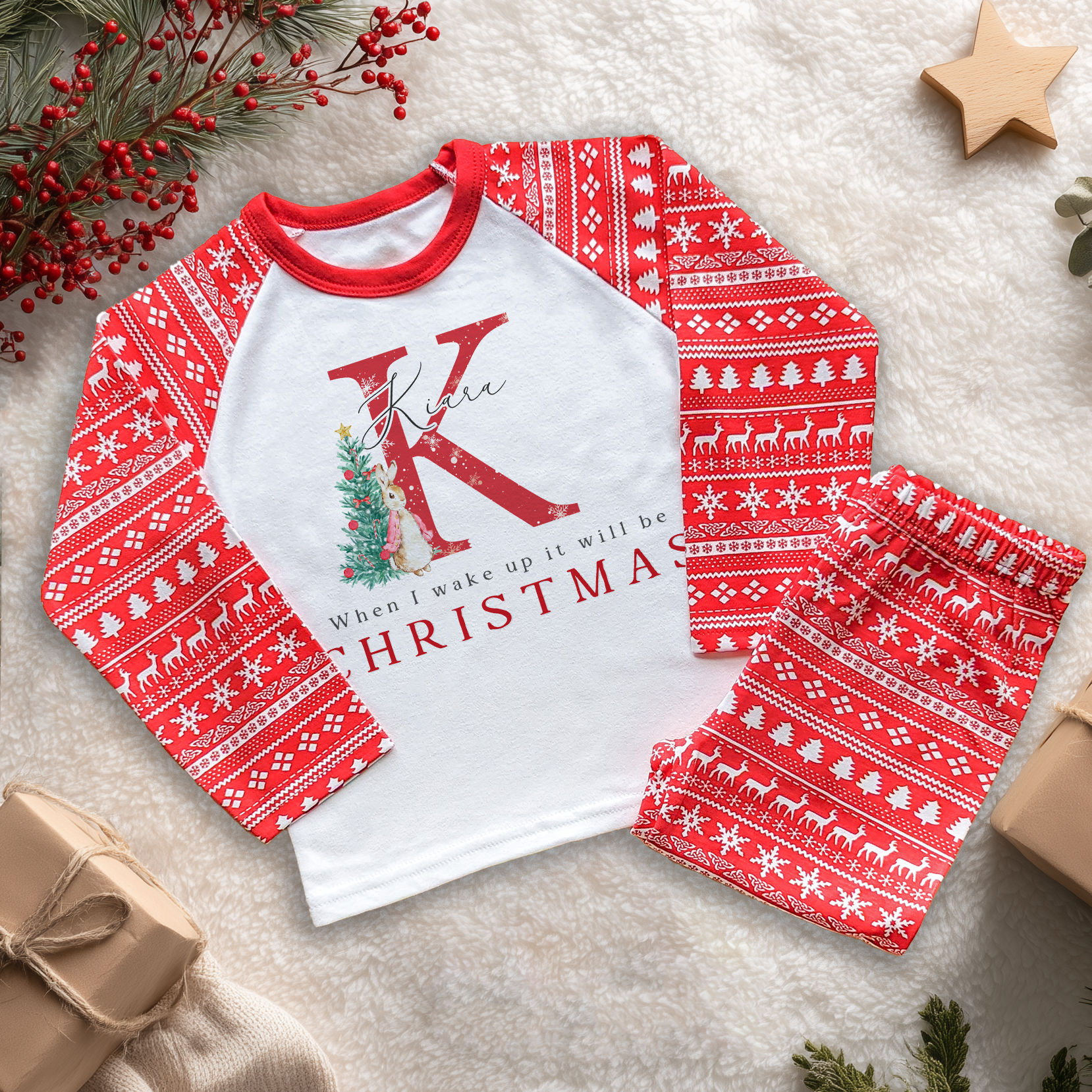 When I Wake Up It Will Be Christmas Peter Rabbit Inspired Personalised Kids Pyjamas Set (PJ's)