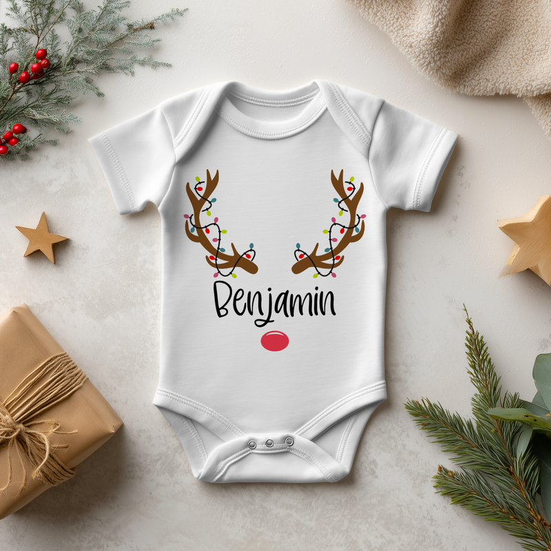 Christmas Reindeer Personalised Boy Baby Bodysuit