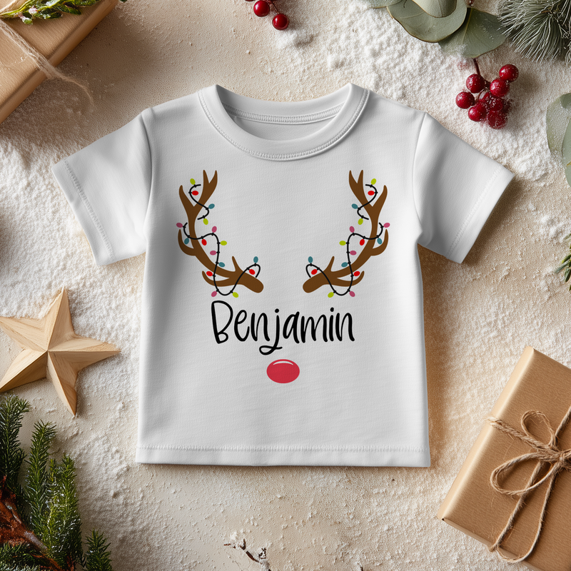 Christmas Reindeer Personalised Boy Toddler & Kids T Shirt