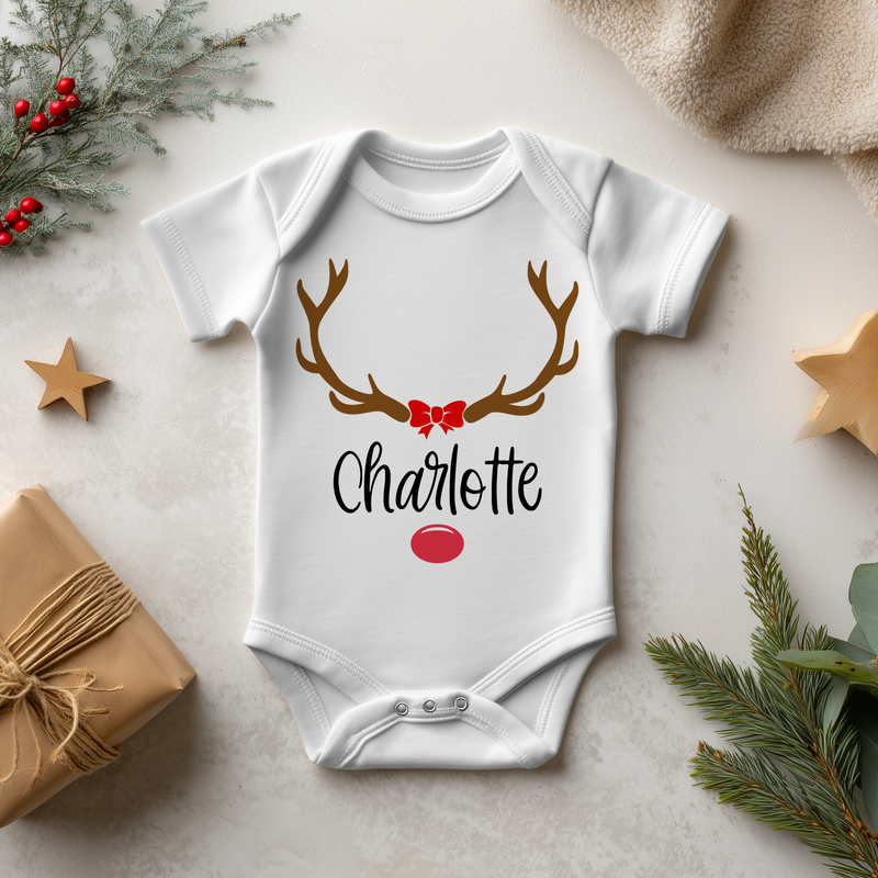 Christmas Reindeer Personalised Girl Baby Bodysuit