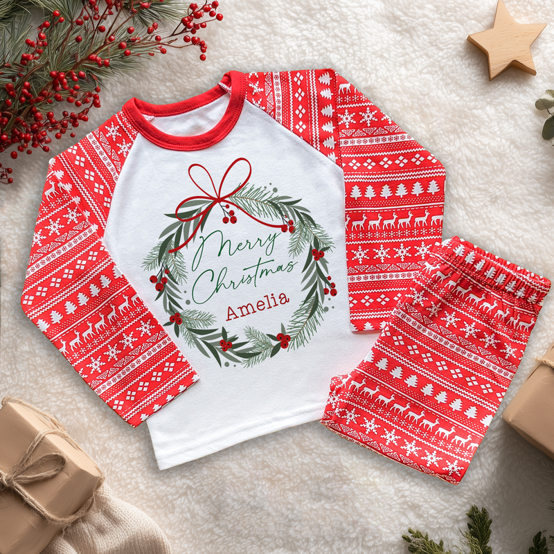 Christmas Wreath Personalised Toddler & Kids Pyjamas Set (PJ's)