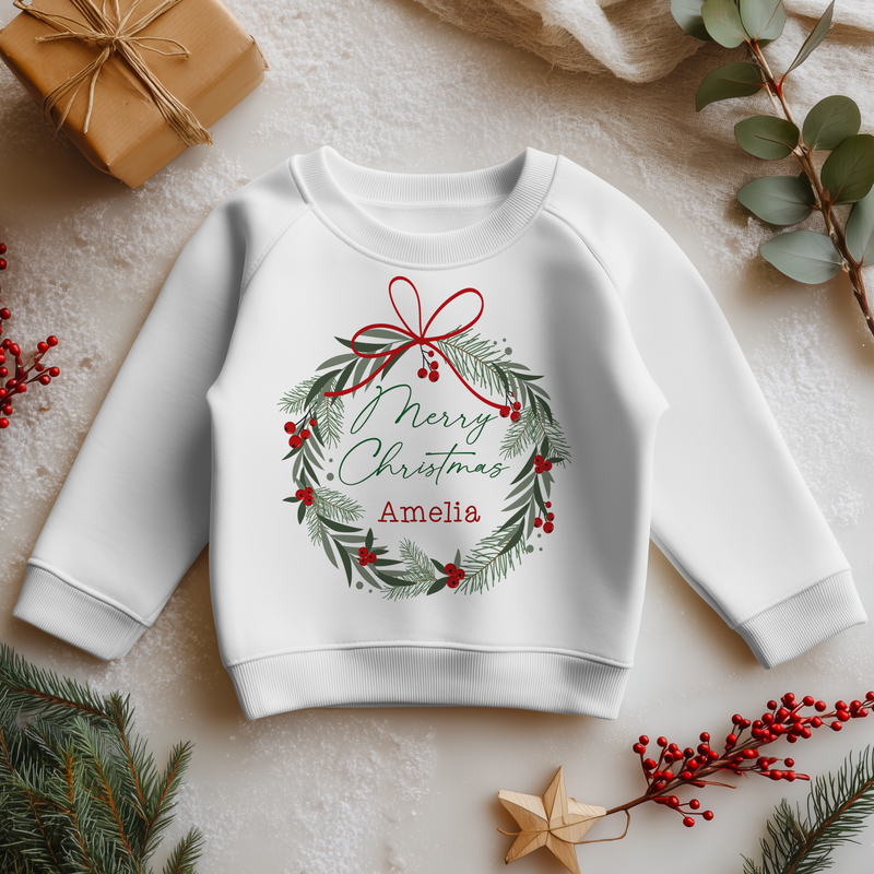 Christmas Wreath Personalised Toddler & Kids Sweatshirt
