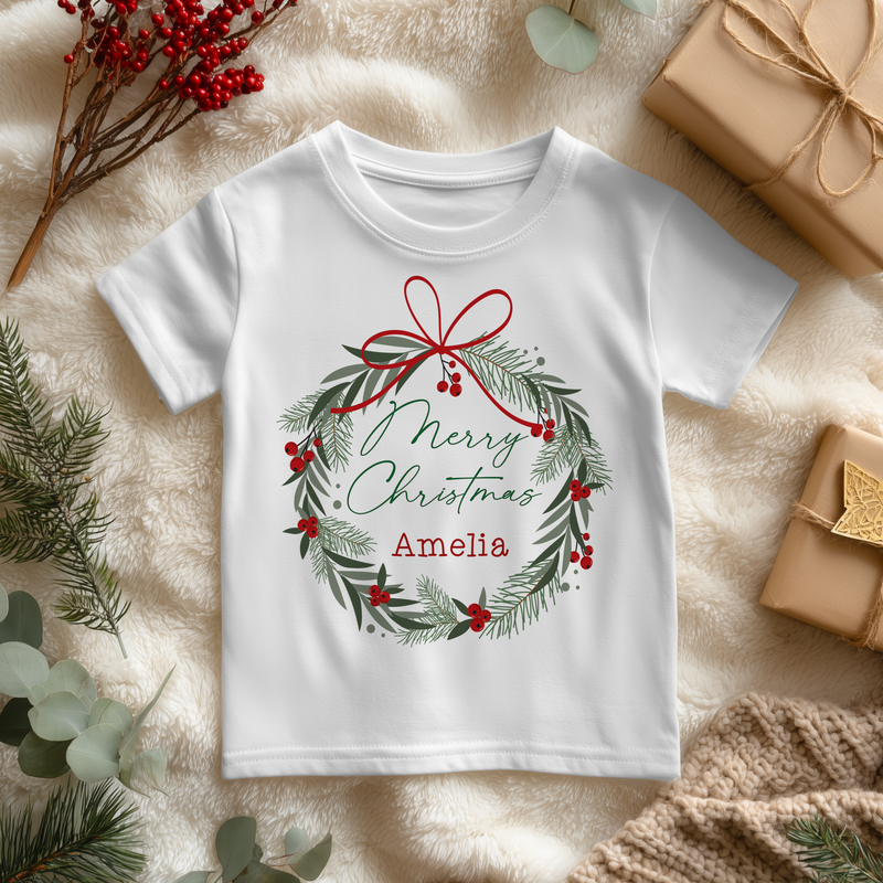 Christmas Wreath Personalised Toddler & Kids T Shirt
