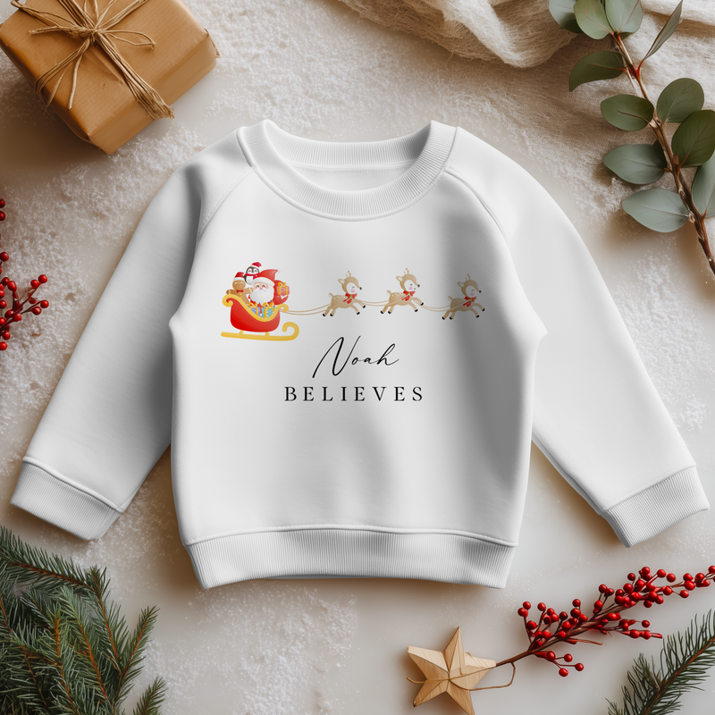 Christmas Believe Santa & Reindeers Personalised Toddler & Kids Sweatshirt