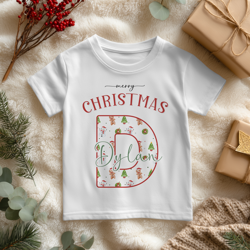 Christmas Name With Initial Personalised Toddler & Kids T Shirt