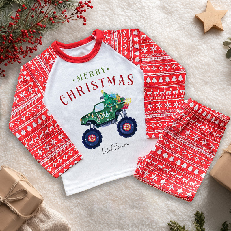 Christmas Monster Truck Personalised Toddler & Kids Pyjamas Set (PJ's)