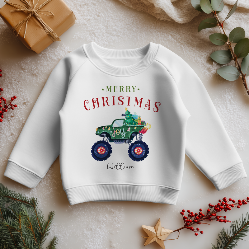 Christmas Monster Truck Personalised Toddler & Kids Sweatshirt