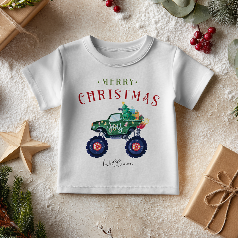 Christmas Monster Truck Personalised Toddler & Kids T Shirt