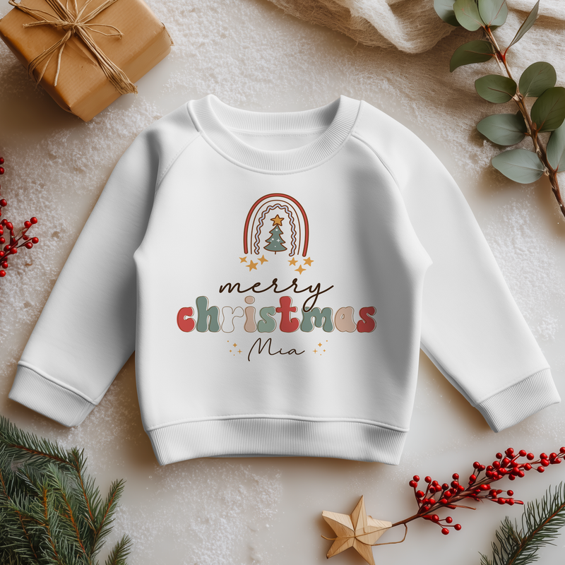 Personalised Christmas Retro Rainbow Toddler & Kids Sweatshirt