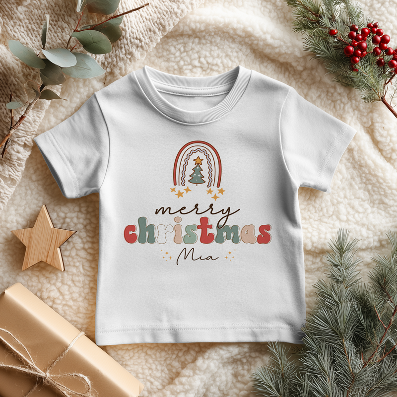 Personalised Christmas Retro Rainbow Toddler & Kids T Shirt