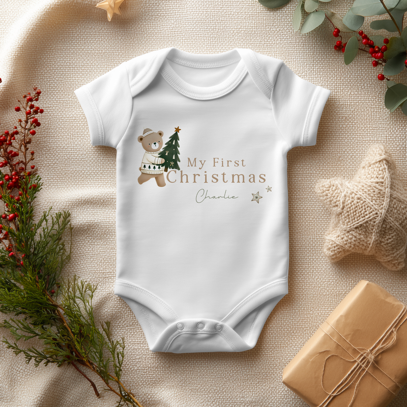 My First Christmas Cute Personalised Baby Bodysuit