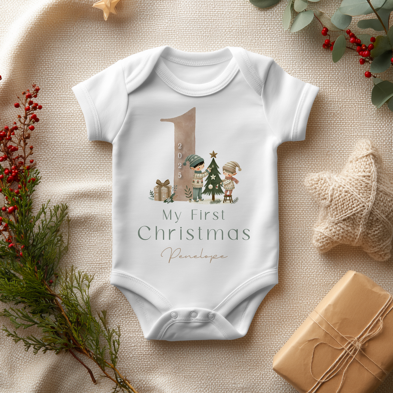 My First Christmas Cute Elf Personalised Baby Bodysuit