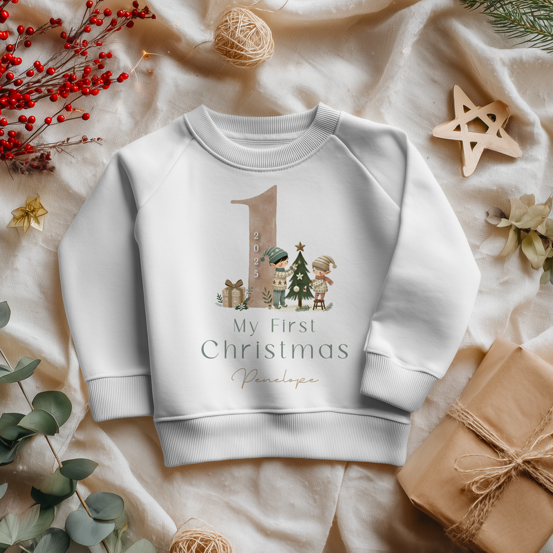 My First Christmas Cute Elf Personalised Toddler & Kids Sweatshirt