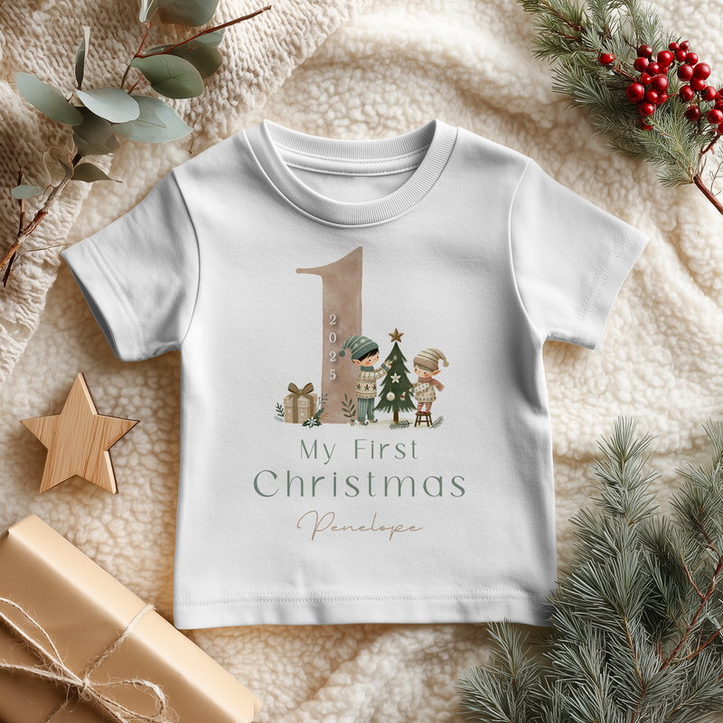 My First Christmas Cute Elf Personalised Toddler & Kids T Shirt