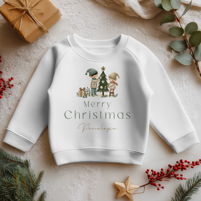 Merry Christmas Cute Elf Personalised Toddler & Kids Sweatshirt