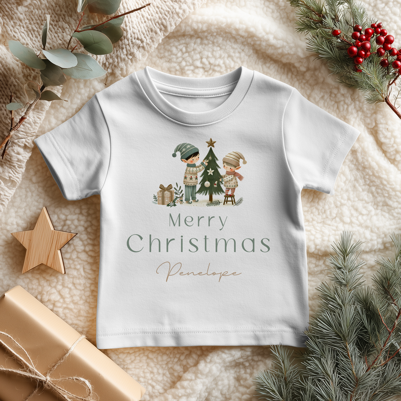Merry Christmas Cute Elf Personalised Toddler & Kids T Shirt