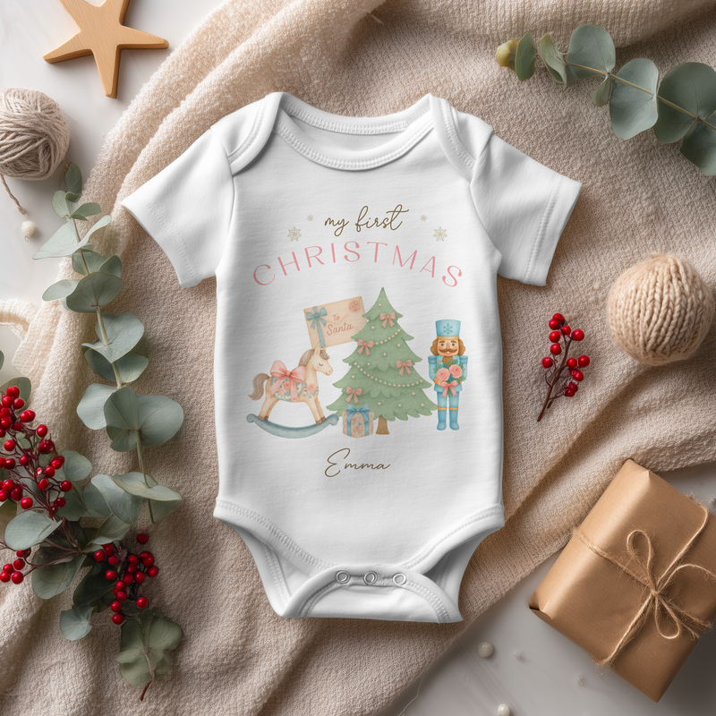 My First Christmas Girl Personalised Baby Bodysuit