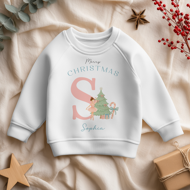 Christmas Girl Name With Initial Personalised Toddler & Kids Sweatshirt
