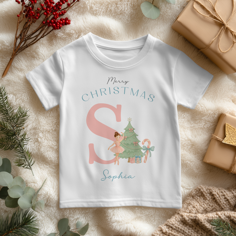 Christmas Girl Name With Initial Personalised Toddler & Kids T Shirt