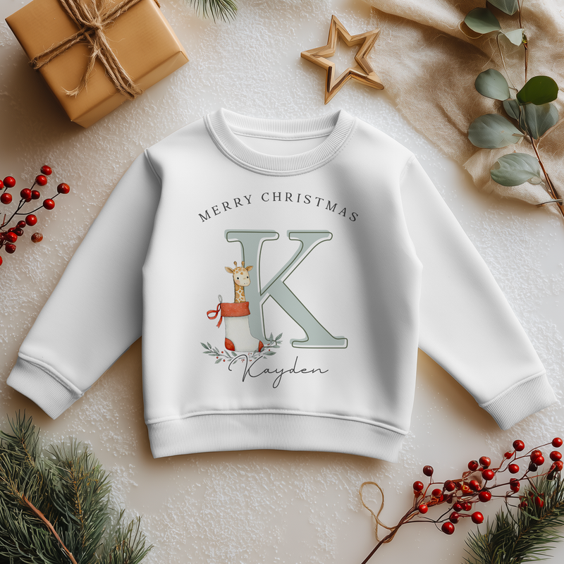 Christmas Giraffe Name With Initial Personalised Toddler & Kids Sweatshirt