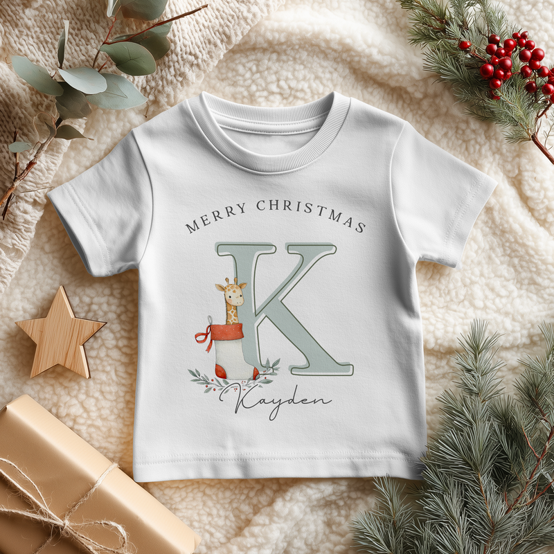 Christmas Giraffe Name With Initial Personalised Toddler & Kids T Shirt