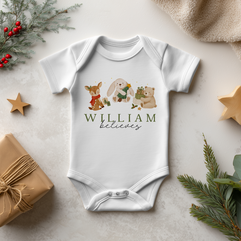 Believe Christmas Animals Personalised Baby Bodysuit